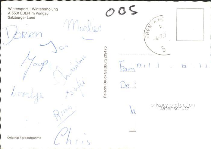72241930 alte Postkarte Eben Pongau postalisch gelaufen Erhaltung siehe scans KatCode: 11390322050406