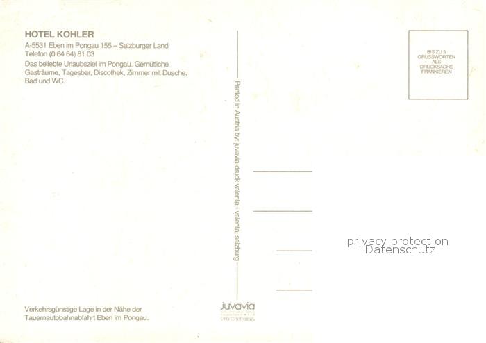 73240740 Eben Pongau Hote Kohler postalisch nicht gelaufen Erhaltung siehe scans [LiesaD40] KatCode: 11390322050406