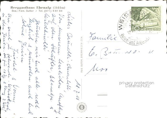 11628229 alte Postkarte Ebenalp Berggasthaus Familie Sutter postalisch gelaufen Erhaltung siehe scans KatCode: 11470280010744