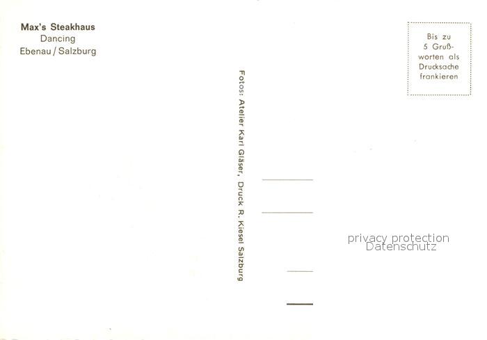 73013042 Ebenau Max Steakhaus postalisch nicht gelaufen Erhaltung siehe scans [NatalD47] KatCode: 11390323050307