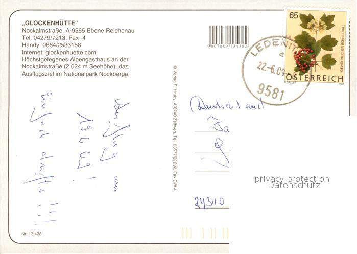 73177097 alte Postkarte Ebene Reichenau Kaernten Glockenhuette Nockalmstrasse postalisch gelaufen Erhaltung siehe scans [NatalD47] KatCode: 11390212021007