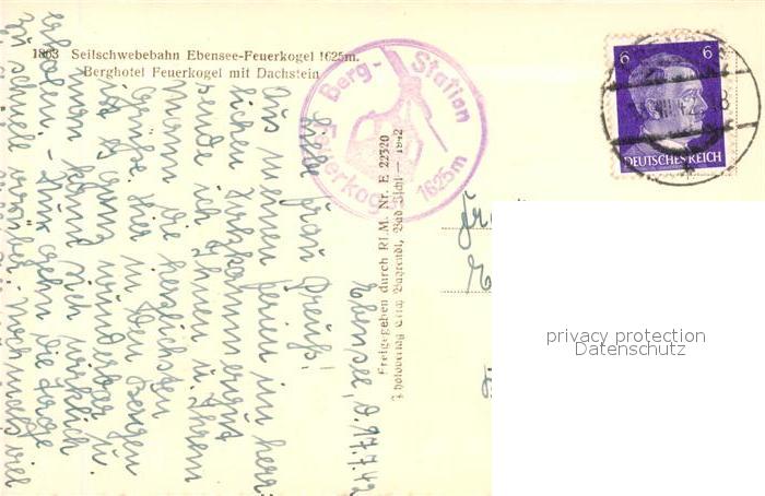 12943258 alte Postkarte Ebensee Oberoesterreich Berghotel Feuerkogel postalisch gelaufen Erhaltung siehe scans [NatalD47] KatCode: 11390315040704