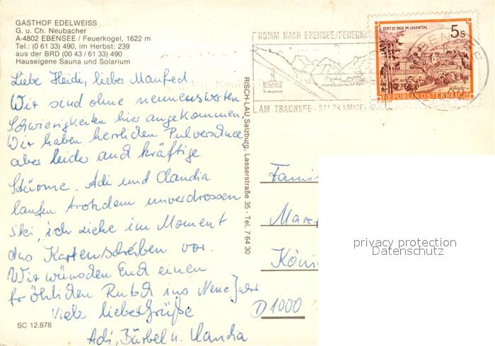73512103 alte Postkarte Ebensee Oberoesterreich Gasthof Edelweiss Winter postalisch gelaufen Erhaltung siehe scans [KathaD81] KatCode: 11390315040704