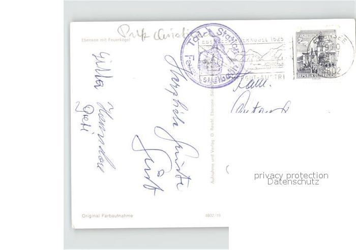71942807 alte Postkarte Ebensee Oberoesterreich mit Feuerkogel Bergbahn Alpenpanorama im Sommer postalisch gelaufen Erhaltung siehe scans KatCode: 11390315040704