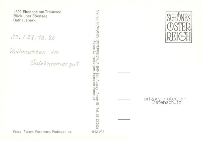 73626019 Ebensee Oberoesterreich Ortsansicht Traunsee Rathauspark Kirche postalisch nicht gelaufen Erhaltung siehe scans [FriedD77] KatCode: 11390315040704