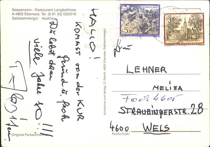 71432001 Ebensee Oberoesterreich Panorama Strand Seepension Restaurant Langbathsee mit Alpenblick KatCode 11390315040704