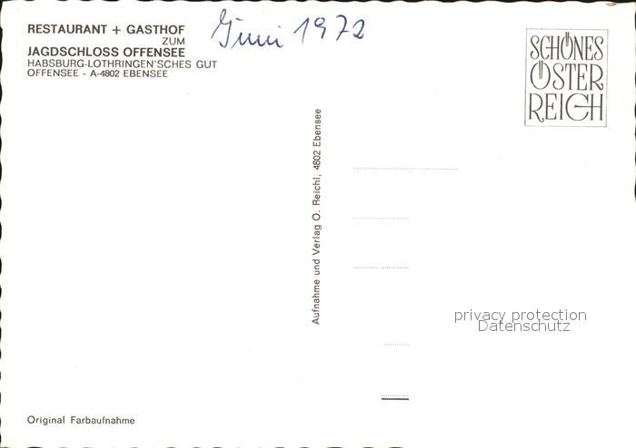 72581848 Ebensee Oberoesterreich Restaurant Gasthaus Jagdschloss Offensee postalisch nicht gelaufen Erhaltung siehe scans [LiesaD40] KatCode: 11390315040704