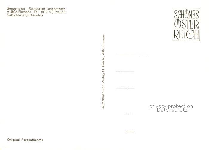 73159845 Ebensee Oberoesterreich Seepension Restaurant Langbathsee Badestrand Alpenpanorama postalisch nicht gelaufen Erhaltung siehe scans [FriedD77] KatCode: 11390315040704