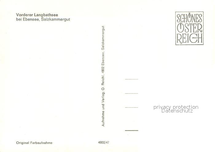 73629094 Ebensee Oberoesterreich Vorderer Langbathsee postalisch nicht gelaufen Erhaltung siehe scans [WerneD78] KatCode: 11390315040704