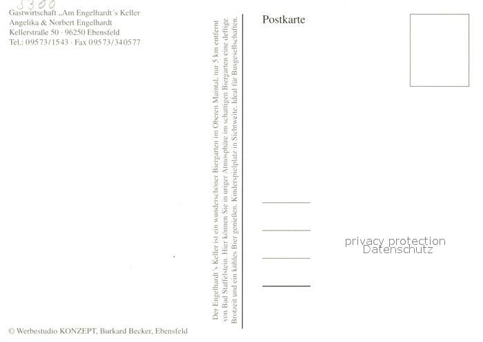 73204473 Ebensfeld Gastwirtschaft am Engelhardt’s Keller postalisch nicht gelaufen Erhaltung siehe scans [FriedD77] KatCode: 11110009478120