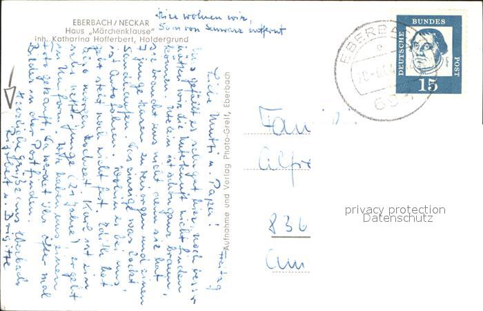 41586518 alte Postkarte Eberbach Baden Haus Maerchenklause postalisch gelaufen Erhaltung siehe scans KatCode: 11110008226013