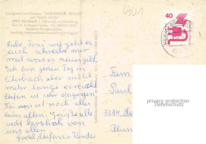 74048502 alte Postkarte Eberbach Baden Neckar HEIDELBERG BW Landgasthof Goldner Pflug postalisch gelaufen Erhaltung siehe scans [WerneD78] KatCode: 11110008226013