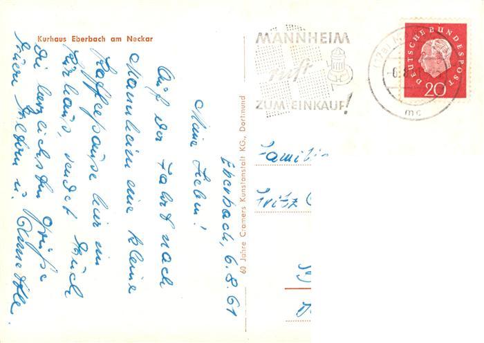 73908712 alte Postkarte Eberbach Baden Neckar Kurhaus Eberbach postalisch gelaufen Erhaltung siehe scans [WerneD78] KatCode: 11110008226013