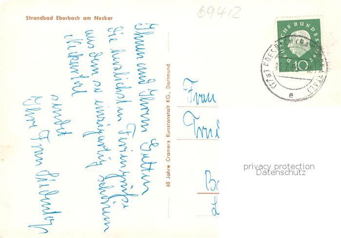 73853602 alte Postkarte Eberbach Baden Neckar Strandbad postalisch gelaufen Erhaltung siehe scans [WerneD78] KatCode: 11110008226013
