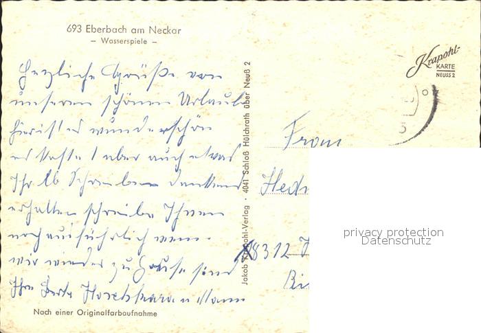72367820 alte Postkarte Eberbach Baden Wasserspiele postalisch gelaufen Erhaltung siehe scans KatCode: 11110008226013