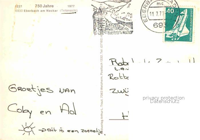 72655043 alte Postkarte Eberbach Neckar postalisch gelaufen Erhaltung siehe scans [LiesaD40] KatCode: 11110008226013
