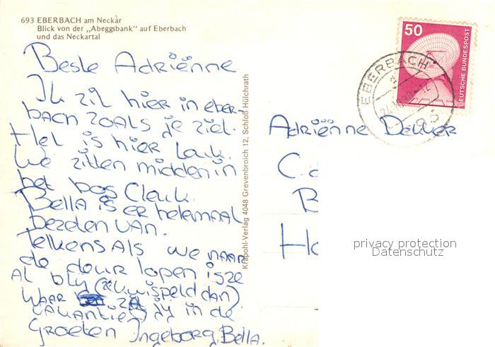 73306155 alte Postkarte Eberbach Neckar Blick von der Abeggsbank ins Neckartal postalisch gelaufen Erhaltung siehe scans [WerneD78] KatCode: 11110008226013
