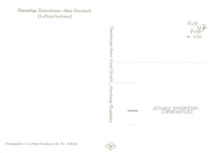 73333228 Eberbach Neckar Ehem Zisterzienser Abtei Fliegeraufnahme postalisch nicht gelaufen Erhaltung siehe scans [WerneD78] KatCode: 11110008226013