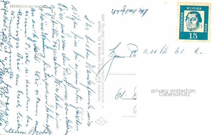 72792447 alte Postkarte Eberbach Neckar Fliegeraufnahme postalisch gelaufen Erhaltung siehe scans [AndreD76] KatCode: 11110008226013