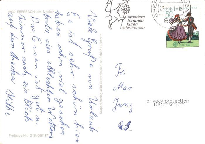 alte Postkarte Eberbach Neckar Fliegeraufnahme postalisch gelaufen Erhaltung siehe scans