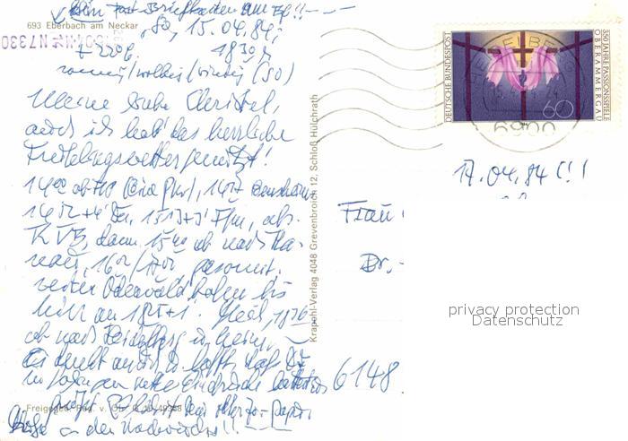 72842727 alte Postkarte Eberbach Neckar Fliegeraufnahme postalisch gelaufen Erhaltung siehe scans [AndreD76] KatCode: 11110008226013