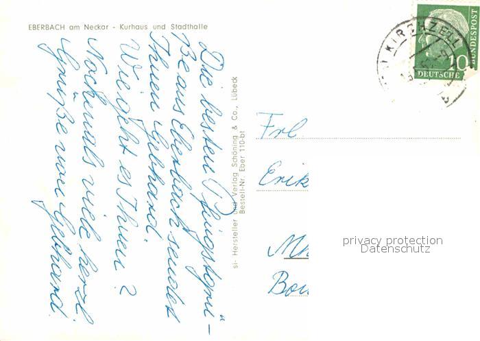 72842738 alte Postkarte Eberbach Neckar Kurhaus Stadthalle postalisch gelaufen Erhaltung siehe scans [AndreD76] KatCode: 11110008226013