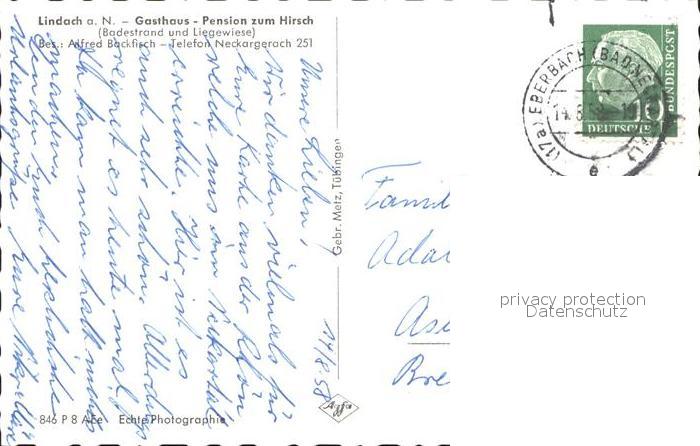 72116991 alte Postkarte Eberbach Neckar Lindach Gasthaus Pension zum Hirsch postalisch gelaufen Erhaltung siehe scans KatCode: 11110008226013