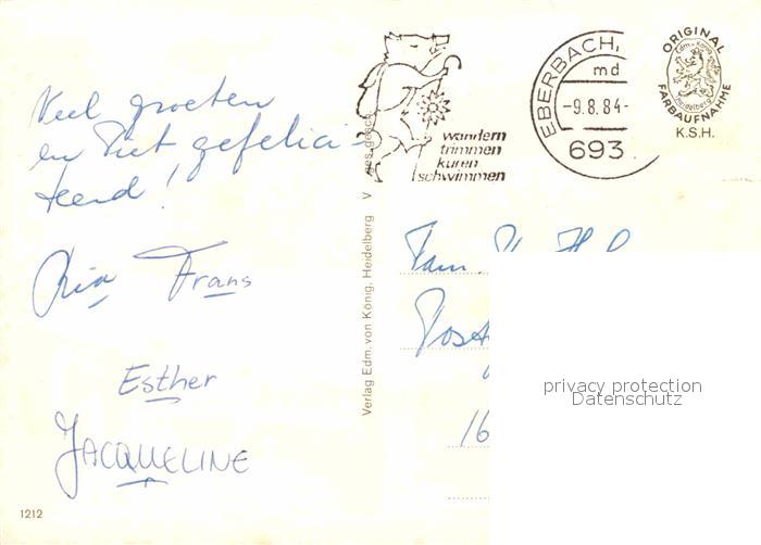 72862040 alte Postkarte Eberbach Neckar Panorama Springbrunnen Kurhaus postalisch gelaufen Erhaltung siehe scans [WerneD78] KatCode: 11110008226013