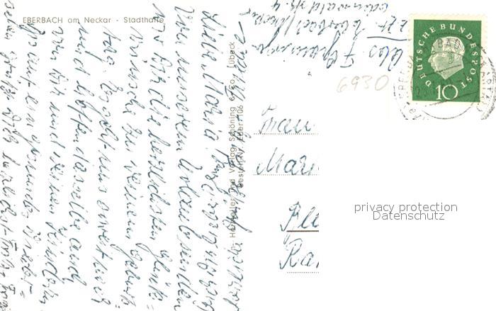 43367845 alte Postkarte Eberbach Neckar Stadthalle postalisch gelaufen Erhaltung siehe scans [WerneD78] KatCode: 11110008226013