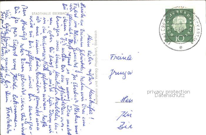 72097987 alte Postkarte Eberbach Neckar Stadthalle postalisch gelaufen KatCode: 11110008226013