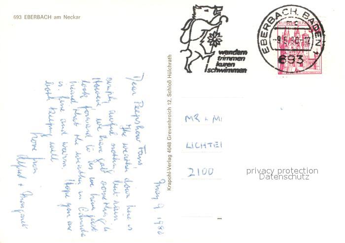 73574431 alte Postkarte Eberbach Neckar Stadtpanorama postalisch gelaufen Erhaltung siehe scans [FriedD77] KatCode: 11110008226013