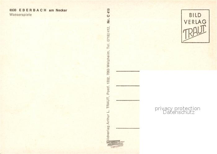 73082287 Eberbach Neckar Wasserspiele postalisch nicht gelaufen Erhaltung siehe scans [KathaD81] KatCode: 11110008226013