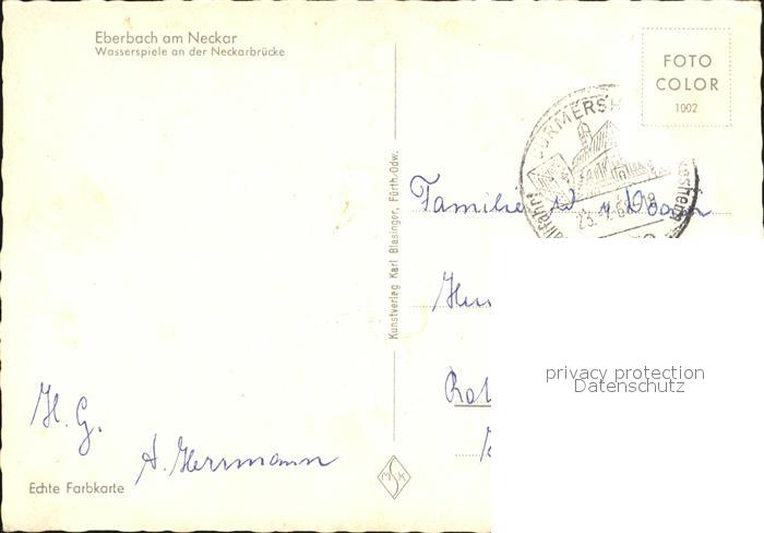 72452025 alte Postkarte Eberbach Neckar Wasserspiele Neckarbruecke postalisch gelaufen Erhaltung siehe scans KatCode: 11110008226013