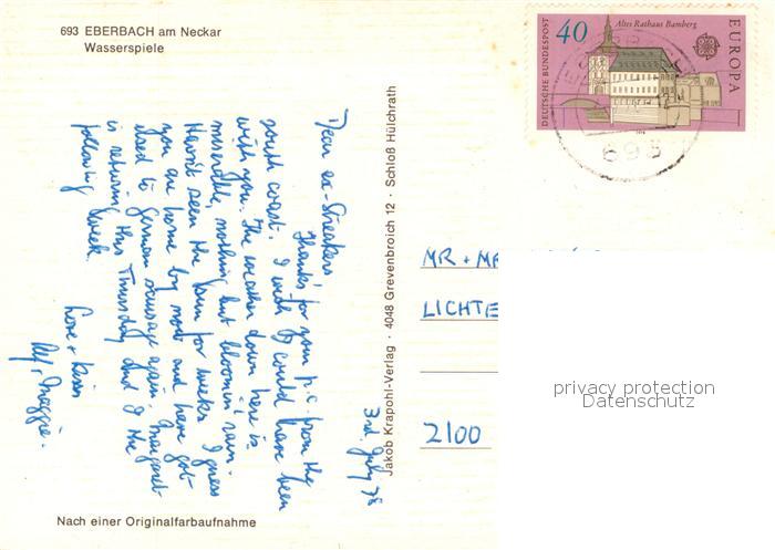 73574433 alte Postkarte Eberbach Neckar Wasserspiele postalisch gelaufen Erhaltung siehe scans [FriedD77] KatCode: 11110008226013