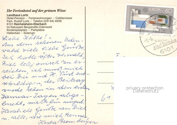 73655886 alte Postkarte Eberbach Odenwald Ferienhotel Landhaus Lortz Kuenstlerkarte postalisch gelaufen Erhaltung siehe scans [FriedD77] KatCode: 11110006437013