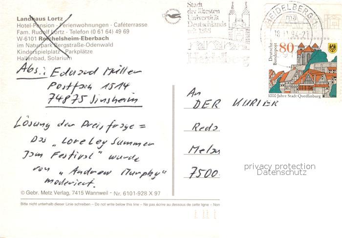 72989742 alte Postkarte Eberbach Odenwald Landhaus Lortz Ruine Rodenstein Terrasse Hallenbad postalisch gelaufen Erhaltung siehe scans [WerneD78] KatCode: 11110006437013
