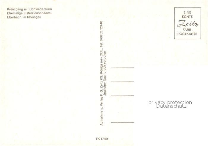 73251286 Eberbach Rheingau Kreuzgang Schwedenturm ehemalige Zisterzienserabtei postalisch nicht gelaufen Erhaltung siehe scans [KathaD81] KatCode: 11110006439003