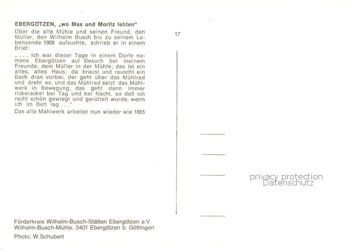 73763265 Ebergoetzen Alte Muehle wo Max und Moritz lebten postalisch nicht gelaufen Erhaltung siehe scans [WerneD78] KatCode: 11110003152008