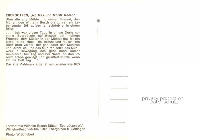 72723946 Ebergoetzen Muehle Wilhlem Busch Max und Moritz postalisch nicht gelaufen Erhaltung siehe scans [LiesaD40] KatCode: 11110003152008