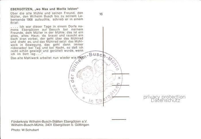 72608772 Ebergoetzen wo Max und Moritz lebten Wilhelm Busch Muehle postalisch nicht gelaufen Erhaltung siehe scans [LiesaD40] KatCode: 11110003152008