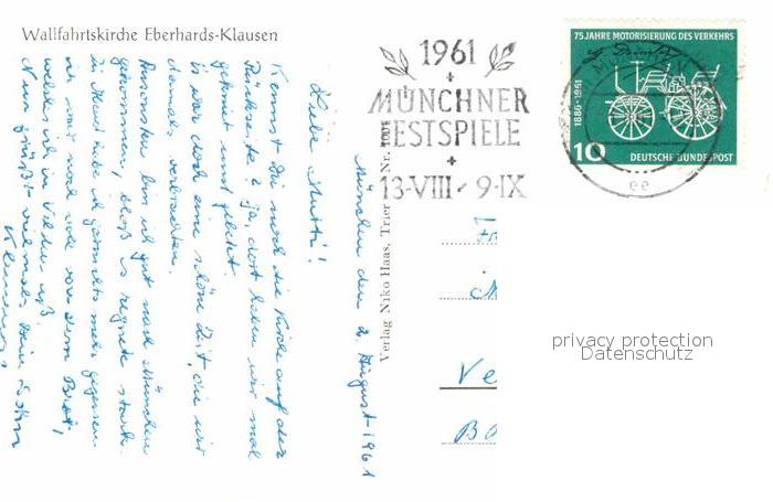 72809330 alte Postkarte Eberhards-Clausen Wallfahrtskirche Innenansicht postalisch gelaufen Erhaltung siehe scans [FriedD77] KatCode: 11110007231086