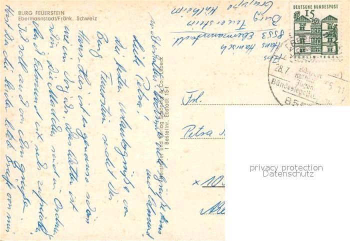 72841561 alte Postkarte Ebermannstadt Burg Feuerstein postalisch gelaufen Erhaltung siehe scans [LiesaD40] KatCode: 11110009474121