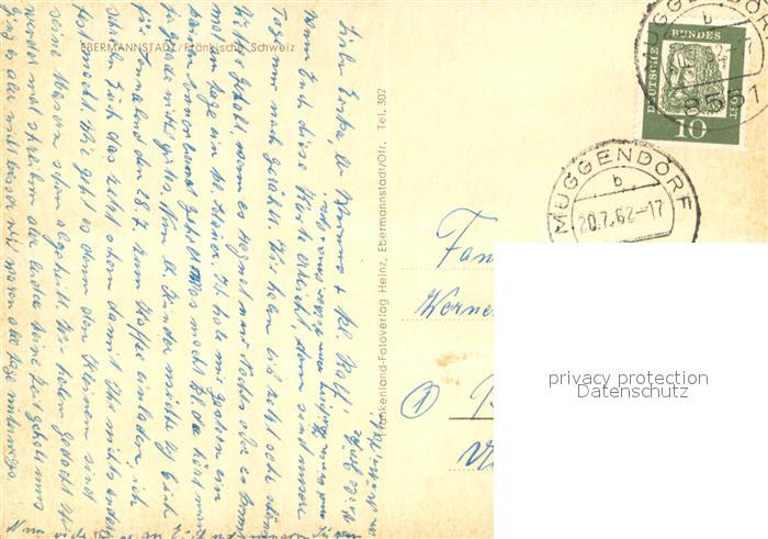 73735630 alte Postkarte Ebermannstadt Burg Feuerstein Stadtpanorama Schoepfrad an der Wiesent Fachwerkhaus Inneres der Kirche postalisch gelaufen Erhaltung siehe scans [FriedD77] KatCode: 11110009474121