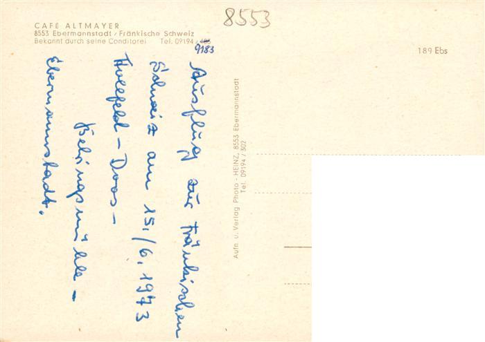 73893181 Ebermannstadt Cafe Altmayer Panorama Gastraum Terrasse postalisch nicht gelaufen Erhaltung siehe scans [WerneD78] KatCode: 11110009474121