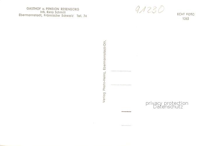 73854588 Ebermannstadt Gasthof Pension Resengoerg postalisch nicht gelaufen Erhaltung siehe scans [WerneD78] KatCode: 11110009474121