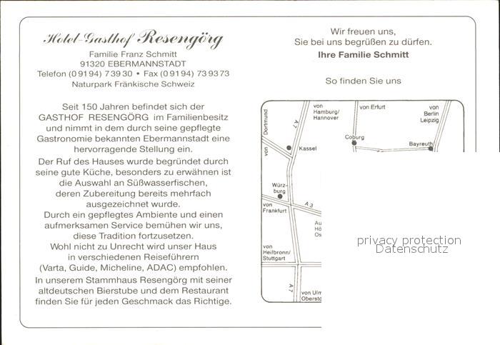 72050887 Ebermannstadt Hotel Gasthof Resengoerg postalisch nicht gelaufen Werbekarte (keine Postkarte) Erhaltung siehe scans KatCode: 11110009474121