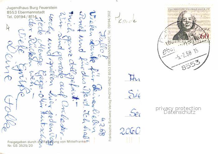 72919614 alte Postkarte Ebermannstadt Jugendhaus Burg Feuerstein Fliegeraufnahme postalisch gelaufen Erhaltung siehe scans [FriedD77] KatCode: 11110009474121