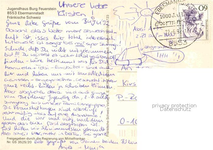 72783412 alte Postkarte Ebermannstadt Jugendhaus Burg Feuerstein Fliegeraufnahme postalisch gelaufen Erhaltung siehe scans [WerneD78] KatCode: 11110009474121