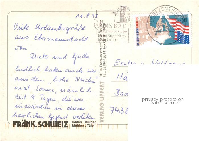 73248297 alte Postkarte Ebermannstadt Panorama Schwimmbad Park Ortsansicht postalisch gelaufen Erhaltung siehe scans [KathaD81] KatCode: 11110009474121