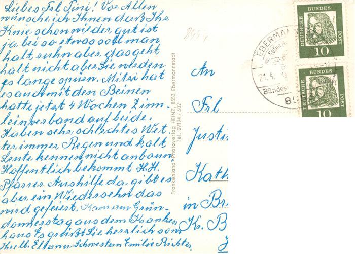 73887178 alte Postkarte Ebermannstadt Schloss Panorama Brunnen Freibad postalisch gelaufen Erhaltung siehe scans [WerneD78] KatCode: 11110009474121